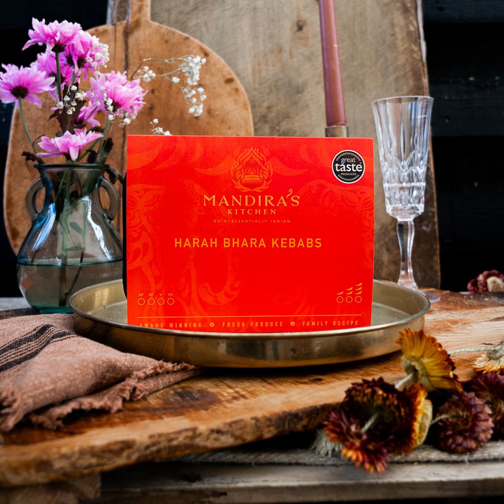 "Our take on a North Indian classic. These handmade patties blend spinach, green peas, and potatoes with Mandira’s signature spices, lightly fried and flash-frozen for freshness.
