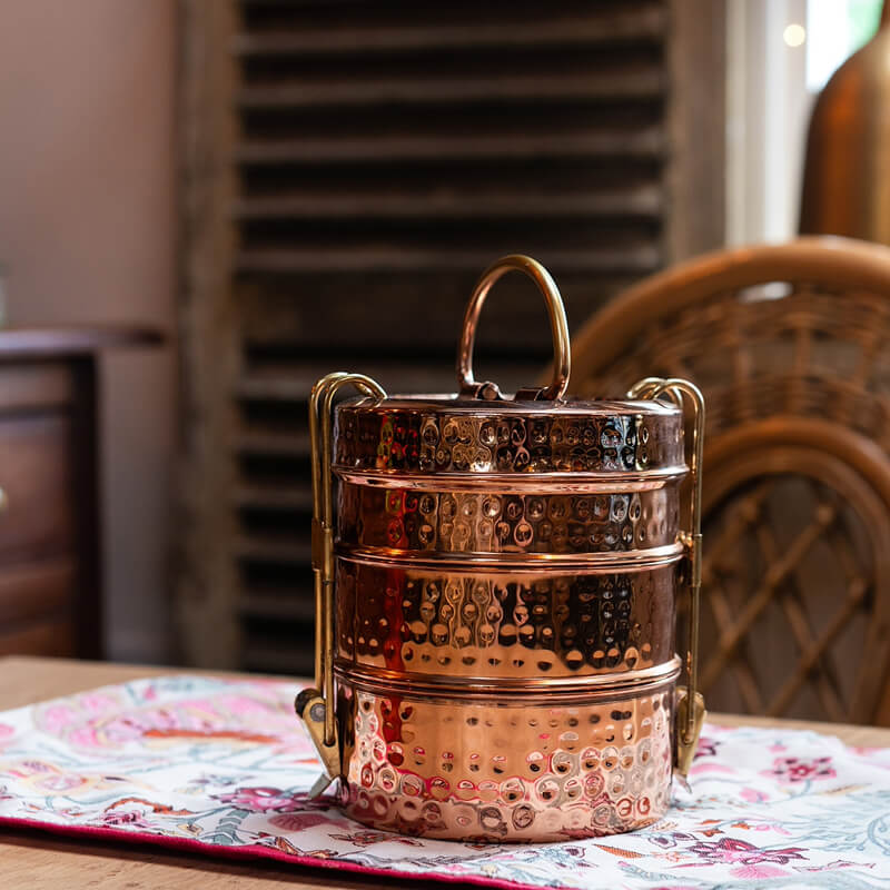 A tiffin carrier evokes memories of old railway journeys and Indian picnics – shared meals and memories where family favourites are cooked and carried in these four compartments. Use these to serve a meal or gift to someone you love. (Hand wash only)